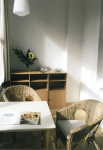 Die Ferienwohnungen sind eingerichtet mit hellen Möbeln aus Birke, Buche und Metall. Die Stoffe zeichnen sich durch freundliche und dezente Farben aus.